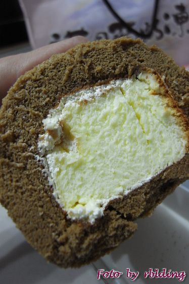 比方說星巴克瑞士捲,中間餡料那黑黑一顆顆看似紅豆的是巧克力碎片,