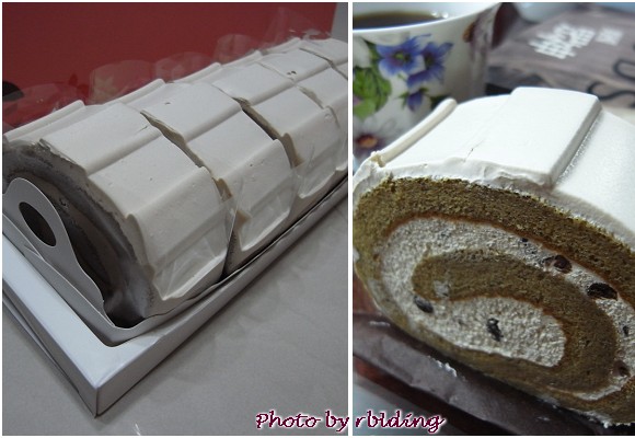 外層是咖啡蛋糕,往內依序是鮮奶油和起司鬆糕。