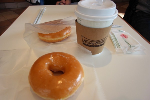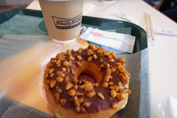 跨過我們住宿的太陽道廣場飯店對面馬路一層又一層的階梯,迎面而來的就是Krispy Kreme 甜甜圈專賣店,再往左走則有星巴克,不管行程怎麼安排,只要需要步行至JR車站,完全是順路早餐的最佳選擇,唯一需要為難的只有甜甜圈或咖啡店二選一的選擇題。