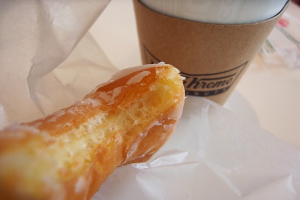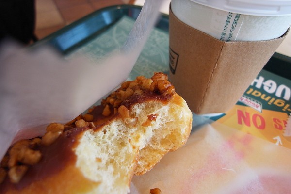 坦白說,來之前雖然覺得Krispy Kreme家機械化製作過程是有趣,但對口味並不特別期待,只是很單純的迷戀著想像中的東京早晨該有的風景。在過去個人狹隘的甜甜圈世界,想吃有彈性的就選擇mister Donut蜜糖波堤,嗜甜症頭發作時同樣來自美國的Dunkin' Donuts金黃方心貝,甜甜圈大概就是那樣了吧!井底之蛙自以為是的這麼以為。