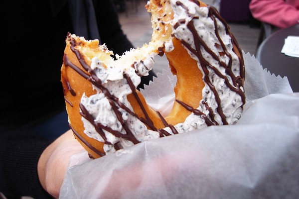新宿店剛開幕時造成櫻花妹瘋狂排隊熱潮,到現在照片都還能在tabelog查詢到,據說當時店家會在特定時間直接分送給現場排隊的人群,一人一個原味甜甜圈,是完整的一整個喔!