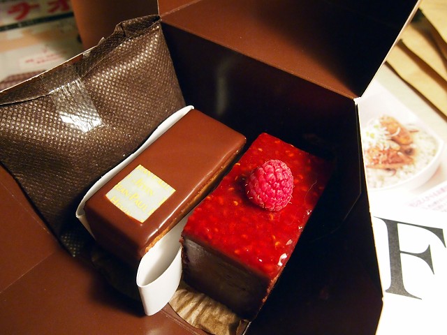 東京的 Jean Paul Hevin 櫃點有供應獨立小蛋糕,跟台北晶華酒店櫃位賣的那種原本是長條蛋糕,硬是切成超級薄片的完全不一樣,台北這種我戲稱為"潘阿"蛋糕,專門賣給潘阿的(指)。