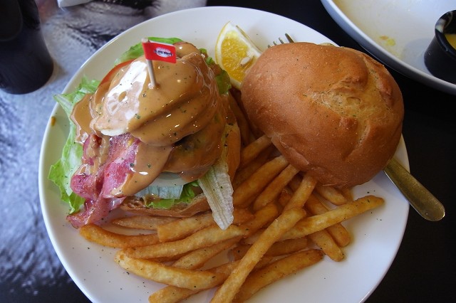 兩個朋友都不吃牛肉因而選擇了風味漢堡,評價也都很正面,剛吃過貳樓餐廳(second floor cafe)的他們認為比貳樓的要好吃,距離自己上次去貳樓已經大概是三年前的事,而且當時也不是點漢堡,無從比較起。