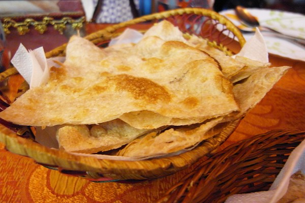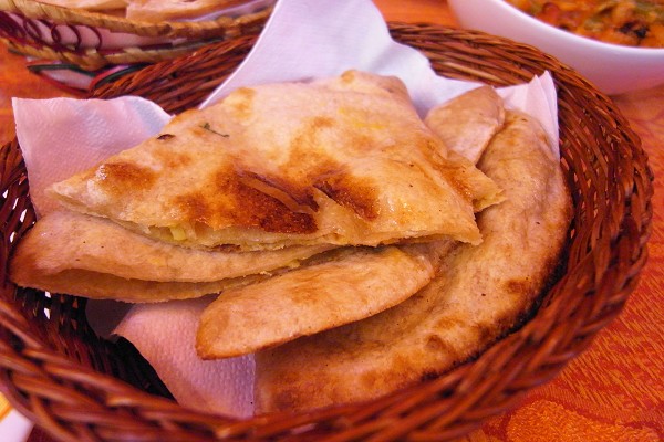塗抹上馬鈴薯泥的烤餅軟Q有彈性,高溫烙出的原味烤餅薄卻有韌性,兩樣因為形體單薄,單吃顯得空虛有些失落,但舀上一匙咖裡卻非常討好。