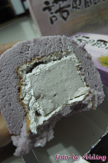 由內向外依序是芋頭奶凍、奶油、海綿蛋糕,